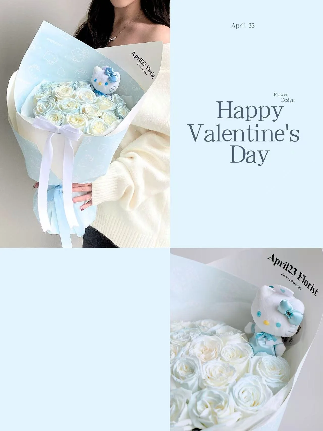 Shop › Hello Kitty Rose Bouquet (Ice Blue) Image 1 of 3 Image 2 of 3 Image 3 of 3 Hello Kitty Rose Bouquet (Ice Blue) $189.00 19 rose me with hello kitty doll ( random design) Add To Cart Added! 19 rose me with hello kitty doll ( random design)