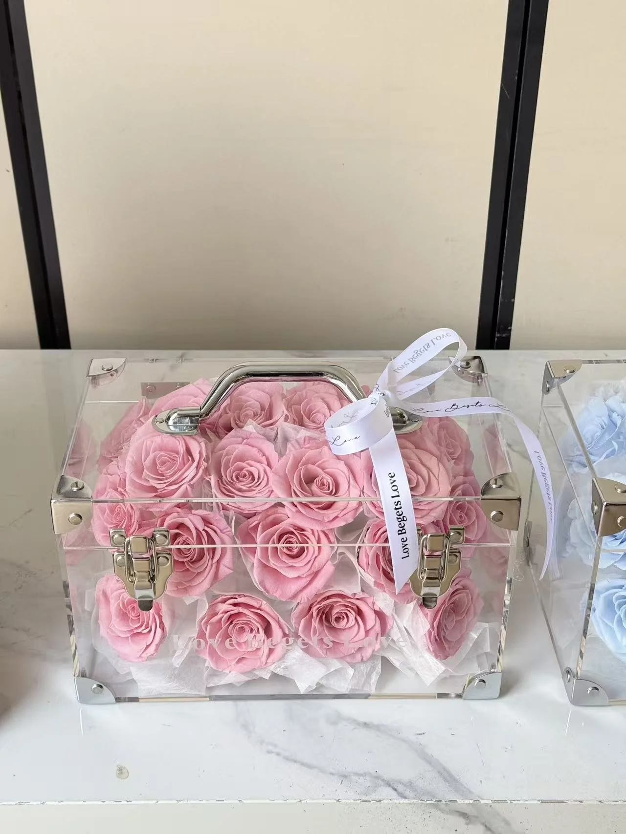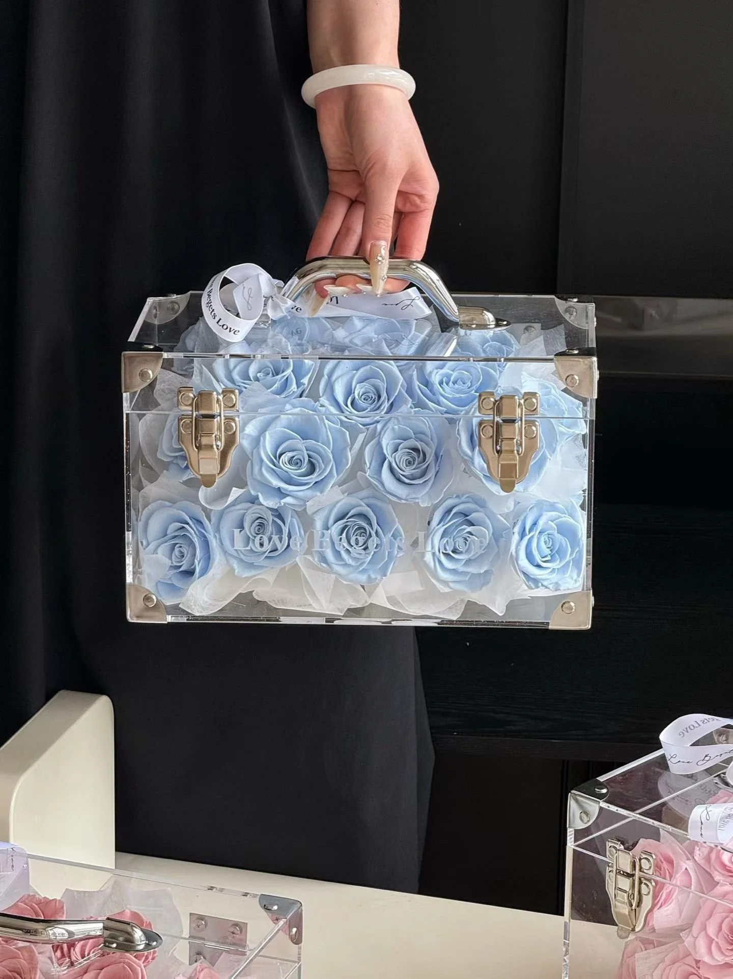 Shop › Preserved Flower carry box Image 1 of 4 Image 2 of 4 Image 3 of 4 Image 4 of 4 Preserved Flower carry box $299.00 21 stems preserved roses. Box can be opened. Color: Sky blue Rose Pink Add To Cart Added! 21 stems preserved roses. Box can be opened.